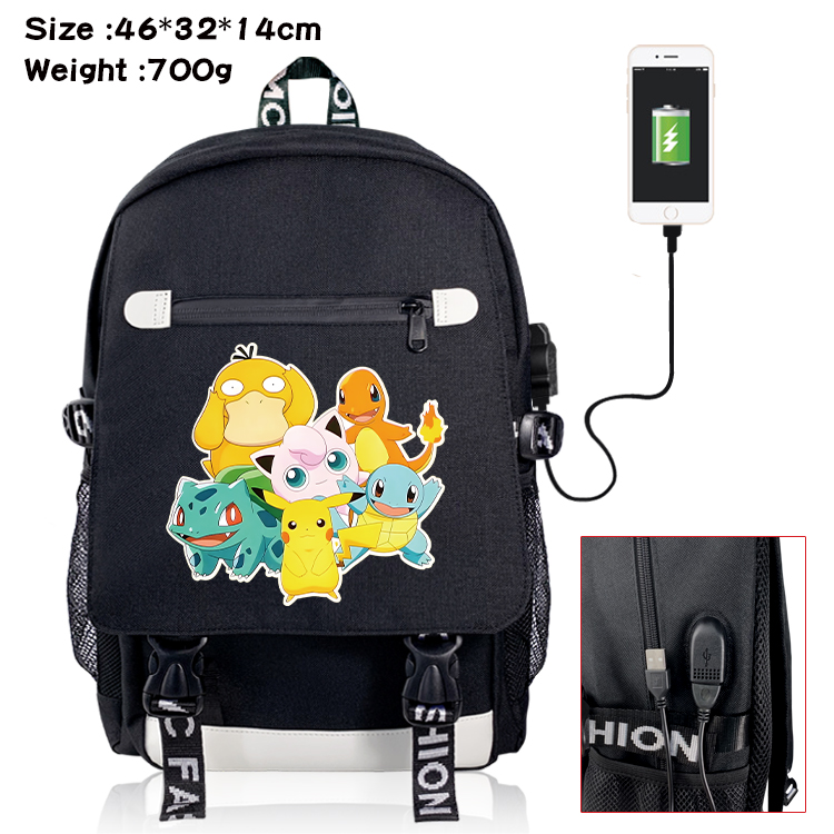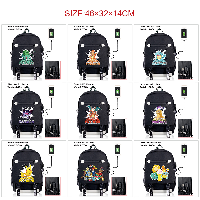 宝可梦宠物小精灵动漫周边男女学生书包 usb数据包布艺双扣翻盖背包 宝可梦-10